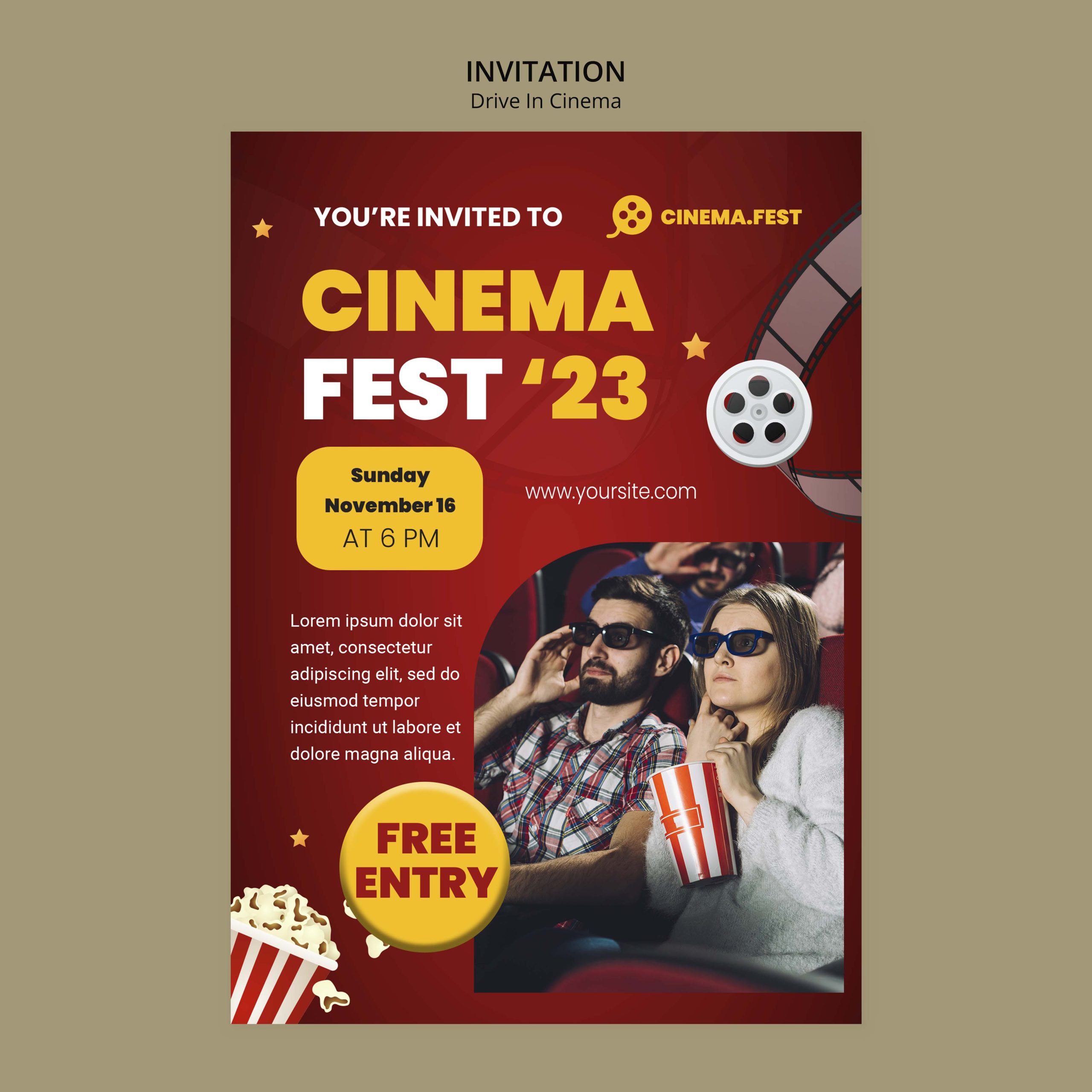 A cinematic design combining dramatic lighting and film strip motifs — perfect for film festivals, cinema promotions, or media houses.