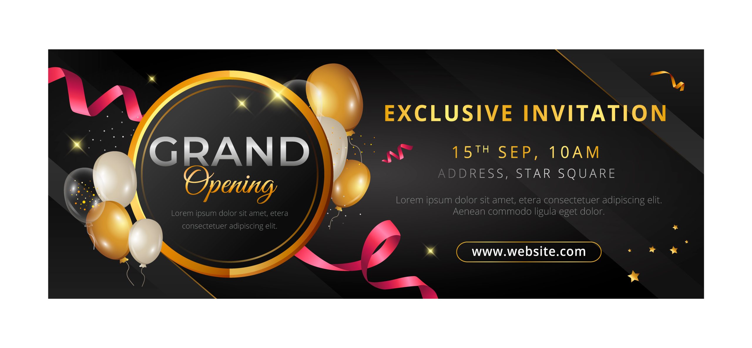 A classy, gold-accented banner that builds excitement for new business openings. Ideal for stores, restaurants, or salons announcing their launch week offers.