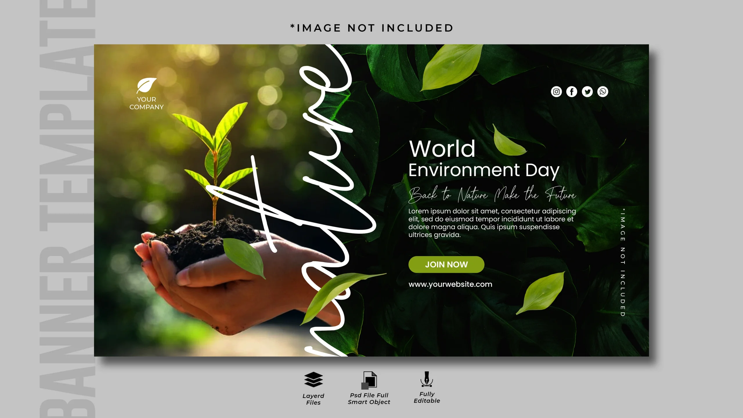 Clean, earth-toned visuals and nature motifs make this banner perfect for sustainability campaigns, green events, and CSR initiatives.