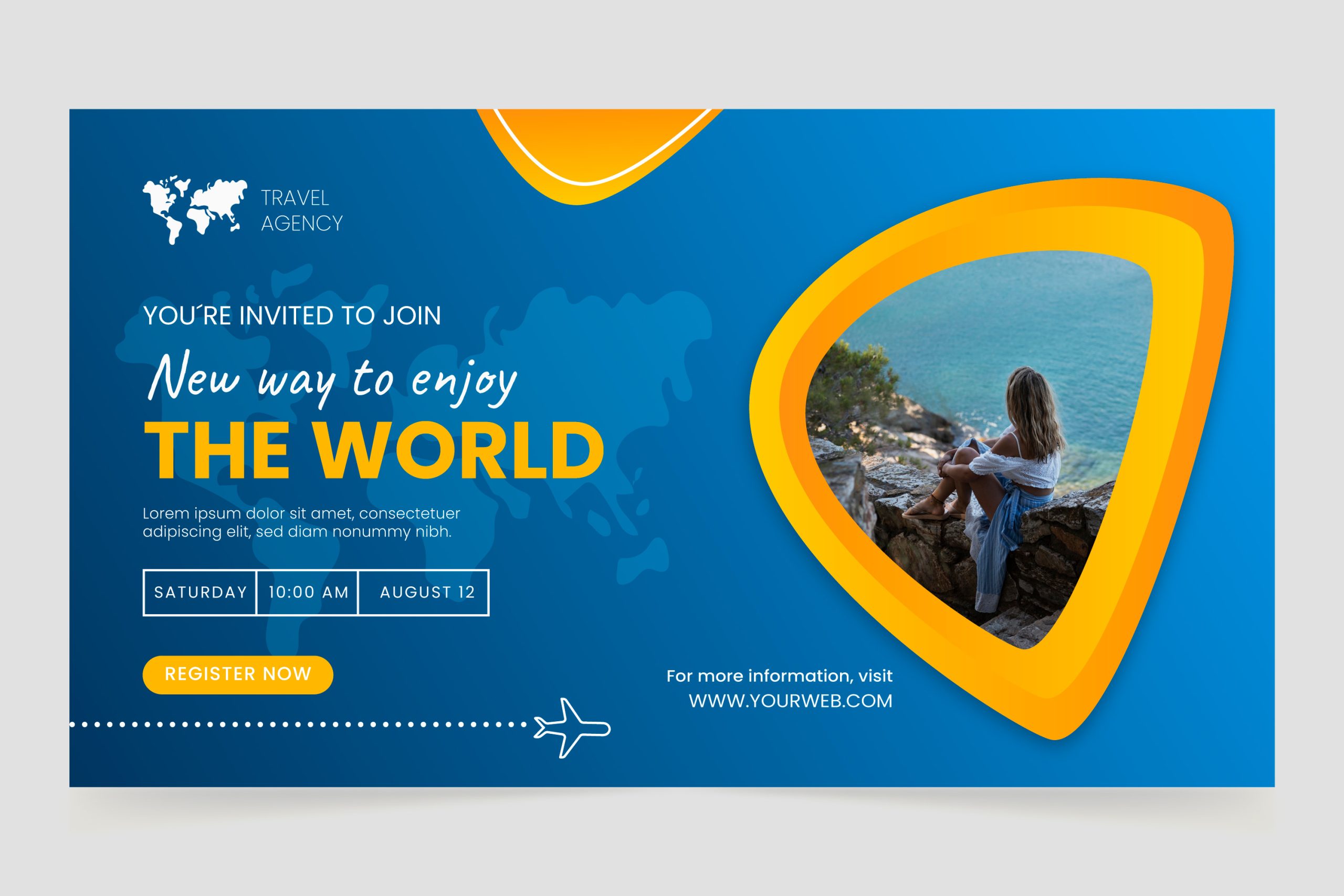 Featuring breathtaking landscapes and sky gradients, this design inspires exploration — great for travel agencies, tour packages, or destination promotions.