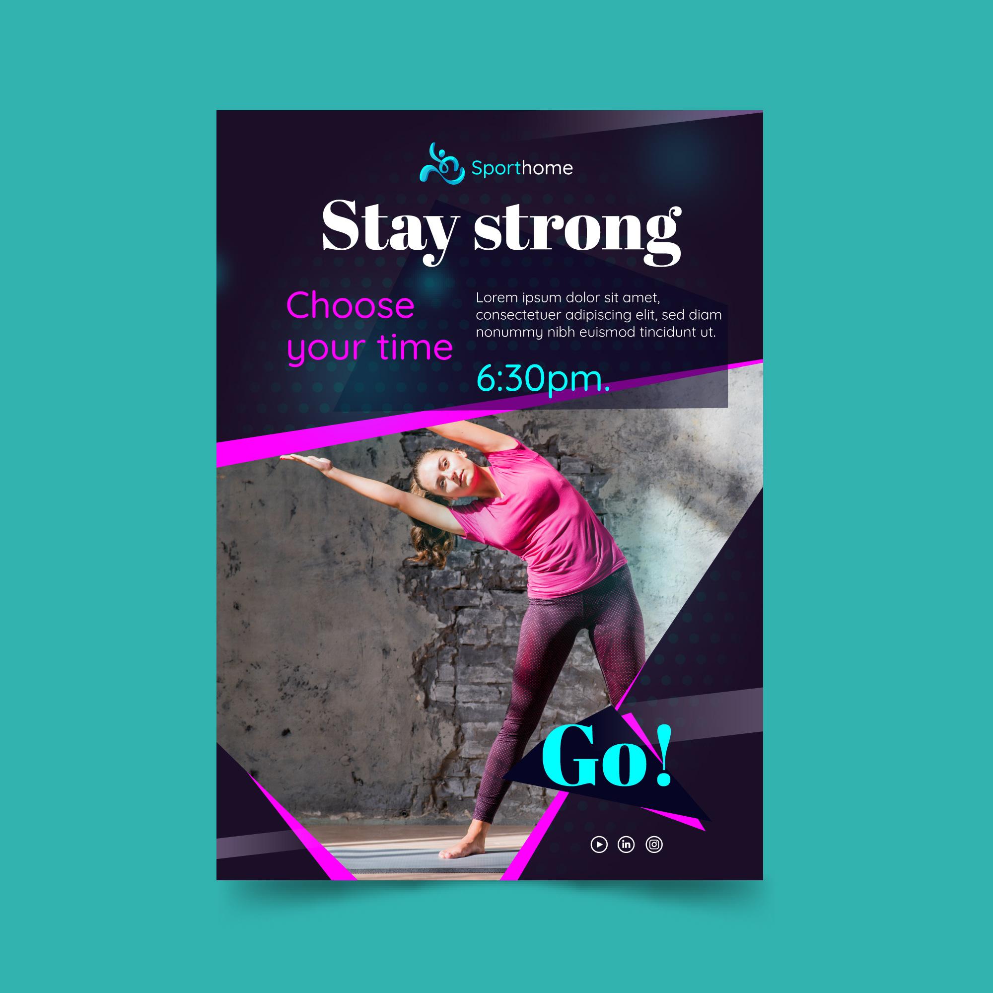 Bold text and action shots combine to create a high-energy visual, perfect for fitness clubs, sports events, or health product ads.